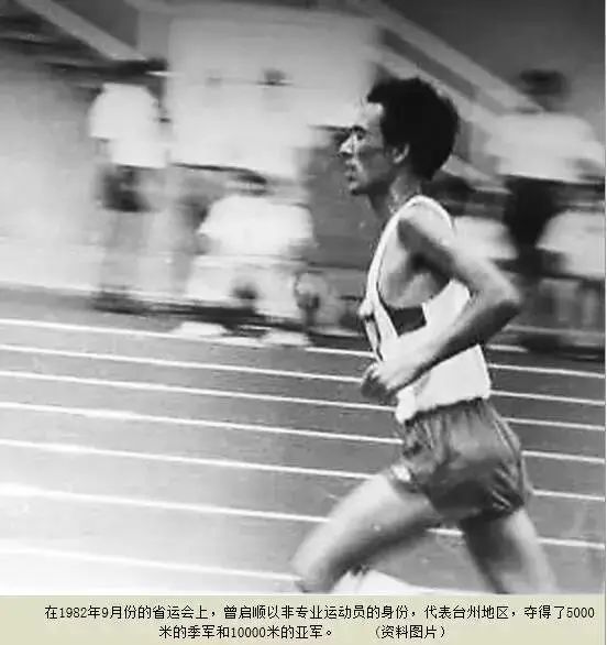 自1959年举办过马拉松比赛后,之后我国就中断了这项体育运动。直到1983年,浙江省才恢复了马拉松运动。曾启顺于1983年的浙江省职工马拉松中首次亮相,并在接下来的几年里,一次又一次地刷新了纪录。