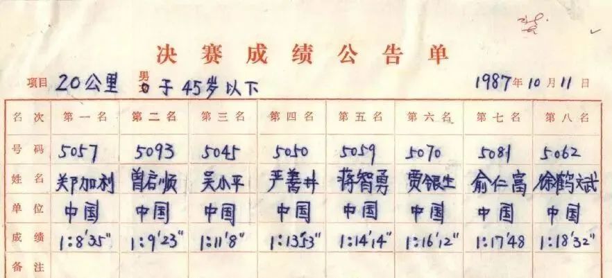 值得一提的是,曾启顺于1986年10月,在北京国际马拉松赛跑出的2小时25分12秒浙江马拉松纪录,尘封了34年。直到2020年,衢州钱江源马拉松赛,羊小军才以2小时24分20秒打破这一浙江马拉松纪录。