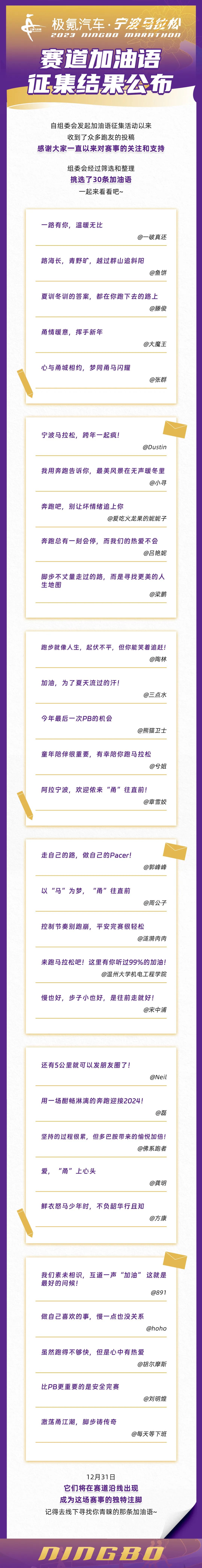 极氪汽车·2023宁波马拉松赛道加油语征集结果公布
