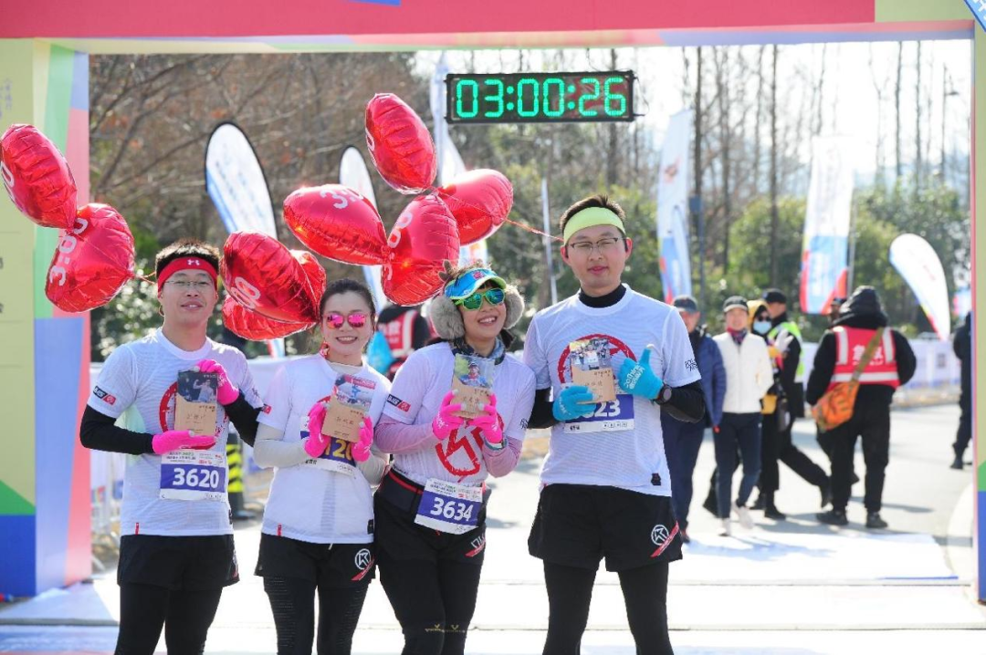 第一次觉得三小时完成半程这么轻松,快到终点的时候不停给在身后的选手加油,跟上我们就成功啦!终于,三小时,我们到达!终点的惊喜再一次让我们感动,终点的流程简单而通畅,终点的青团鲜美入心,还有可可爱爱完赛毛巾暖身体。