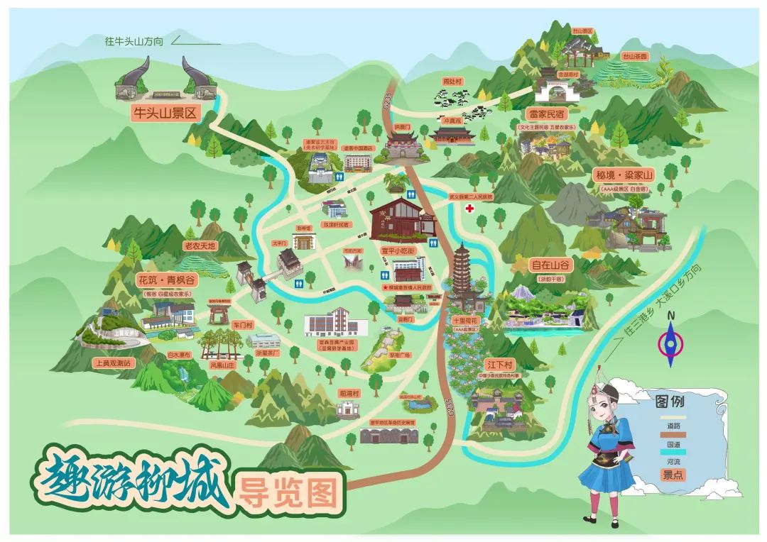 台山景区(祈福)——金湖源村(嬉水)——宣平小吃街(吃喝)——柳城土特产优选中心(购物)——城南码头(漫步)——车门露营基地(躺赢)——白水瀑布(观瀑)——江下村(休闲)——自在山谷(听风)——秘境·梁家山(探秘)